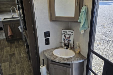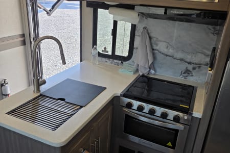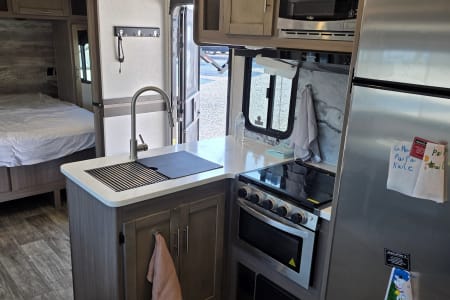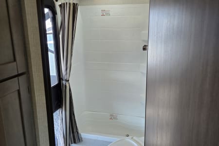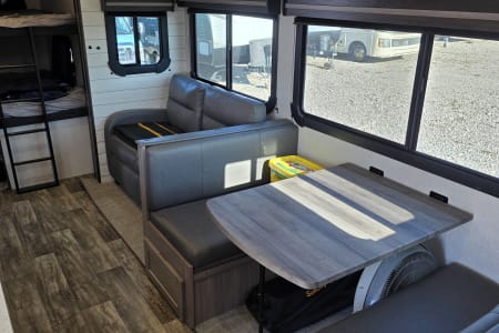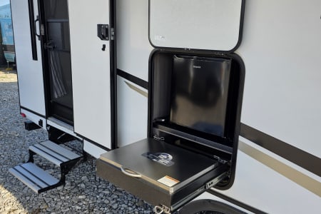 Make memories together near a campfire or wind down with your favorite show thanks to a modern entertainment system. Whether you’re planning a mountain getaway or a lakeside escape, this camper is ready for you!