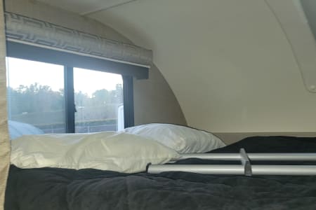 Comfortable Sleeping Options: Sleeps up to 6 people comfortably with a queen-sized bed in the private master bedroom, a convertible dinette, and an over-cab bunk.