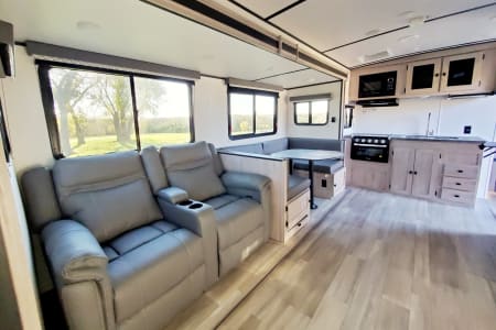 Brand New, 2024 double slide out bunkhouse is the elite home away from home. Look no further, this peaceful abode has all the things you will need for a weekend getaway or extended stay. **50amp hookup needed**