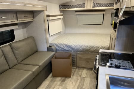 There is a stove inside the trailer but I recommend taking a grill/griddle to be outside for those beautiful mornings making breakfast or dinner. If you don't have one, rent one from me! My grill has both griddle and grill sides and is portable enough to take with you to wherever you need it.