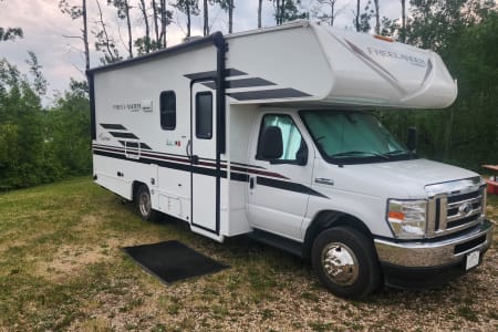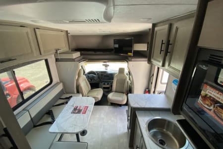 Sabbath (meaning - abstinence from work) is a 2023 21 foot (23 feet overall) Coachmen Class-C model 21RS. It has a small rear bed slide allowing for a walk around rear bedroom, a rear bathroom with shower. the kitchen is well equipped with all the usual and stocked for 4-6 occupants. 3 double beds allows up to 6 people (Rear queen, front queen with 300 pound max, dinette goes down to a small double, best suited fr 2 children or one adult, 2 if cozy is your thing.