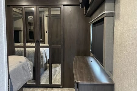 Perfect for families, couples, or small groups, this travel trailer offers a roomy interior with a slide-out feature for extra living space.