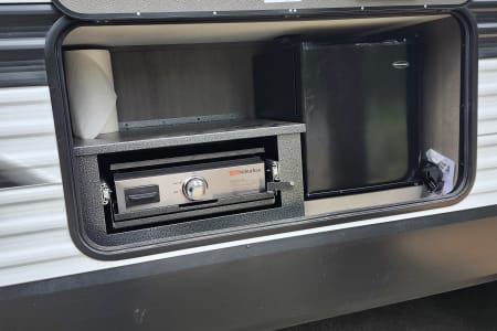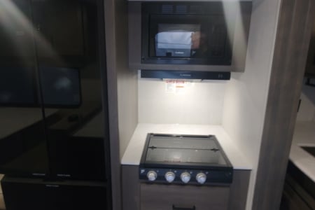 Since this a newer model camper there is no oven, just a microwave for use when plugged in or running a generator.