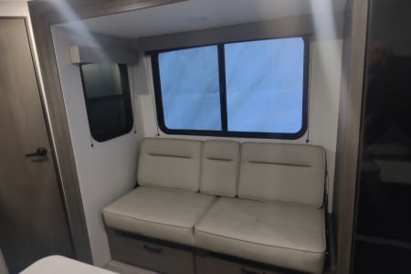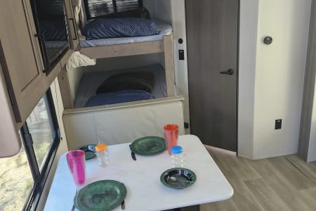 The sofa roles over into a bed if you need a little extra and it is very comfortable for just watching a little TV when the weather doesn't permit outside enjoyment. The 4 person dining table will also convert into a bed if you are needing just one more place to sleep. Remember to bring sleeping bags for these areas as we could not include them and guarantee sanitation for you.
