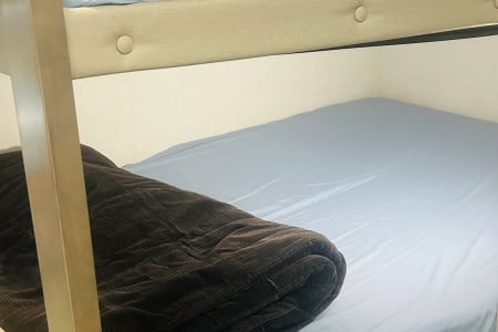The bunk beds will comfortably sleep the kids and there is a USB power bank right beside the beds for the cell phone recharge.