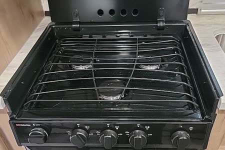 Premium Kitchen Amenities: Equipped with a fully functional kitchen, including a three-burner range, microwave, refrigerator, and ample storage, making meal prep on the road a breeze.