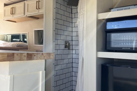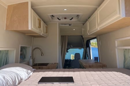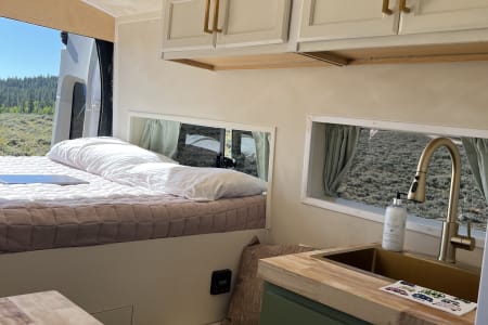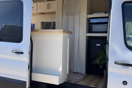 Meet Tolu, a 2016 Ford Transit High Roof, Long Wheelbase Extended (22 ft), custom-built for comfort and adventure. She’s packed with essentials: a queen-size bed, a full kitchen with a sink, 2-burner stovetop, air fryer/convection oven, and a spacious refrigerator. Enjoy the convenience of an indoor shower with a 4-gallon water heater, a 28-gallon fresh water tank (enough for 4 days for two people), and a 20-gallon grey water tank stored underneath. Her dual power system includes solar panels and alternator charging while driving, giving you up to 2 days of off-grid energy. With 3 outlets (one with USB/USBC ports), plenty of overhead storage, and a large garage for gear, Tolu has everything you need for your next road trip. Despite her size, she’s easy to drive and perfect for exploring anywhere your heart desires.