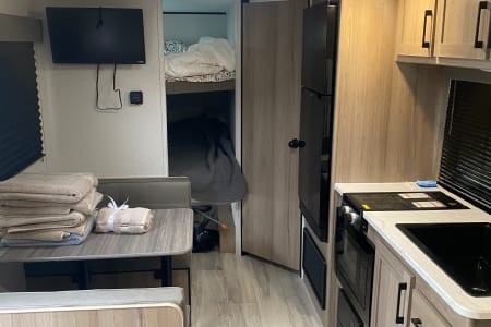 Introducing the NEW 2025 Keystone Coleman 23B, a state-of-the-art, pet-friendly travel trailer designed for ultimate comfort and adventure. This spacious camper boasts a sleek, modern design. Inside, you’ll find luxurious amenities, including a kitchenette, large refrigerator/freezer, dinette, a cozy queen-sized bed, and convertible sleeping to accommodate up to 8 people. Perfect for road trips, off-grid camping, or family vacations, the 2025 Keystone Coleman ensures everyone – including your furry friends – travels in style and comfort.