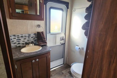 Private Bathroom: Full bath with a walk-in shower and plenty of storage, making your trip convenient and stress-free.