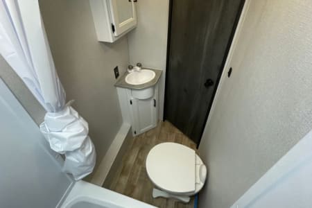 -Includes a shower, sink, and toilet for all the comforts of home.