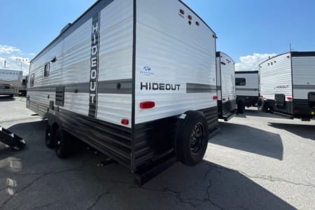 This Keystone Hideout is designed with families in mind. The bunkhouse layout provides ample sleeping options, while the queen bedroom gives parents a private retreat. The full bathroom and modern kitchen ensure your trip is stress-free, and the spacious layout means everyone has room to relax.