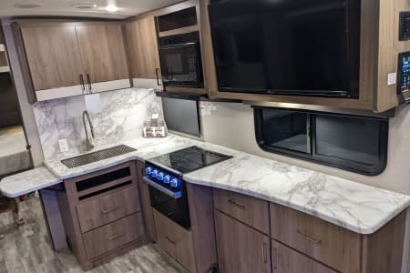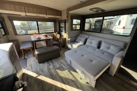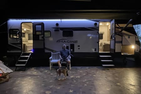 Book 7 nights and get 1 free! If this is your first trailer excursion this is the perfect trailer to rent. Let us teach you the ropes on all aspects of how the trailer works. We can even deliver and set it up for you! This comfortable Grand Design trailer is ready to be your home-away-from-home on your next vacation or weekend getaway. Whether it is for a couples' getaway, or a family - a perfect excursion for you and your furry friends!