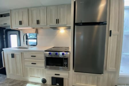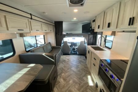 32 foot, easy to drive coach that sleeps 6. Requires no special license or training to drive. Great storage inside and under coach. Queen size bed, over the driver's cabin sleeping, couch and table beds as well. Great kitchen counter space. A great way to have fun and make wonderful memories. Coach includes everything you need to spend your days having adventures. Perfect for a trip with family and friends, a short getaway, a cross country adventure, tailgating or overflow for a large gathering at a home. Only dogs welcome with a $50 pet deposit and prior approval. No pit bulls due to insurance issues. The coach is fully equipped with a full-size refrigerator and freezer, microwave, coffee pot, toaster, 3 burner stove, tv and radio, Roku sticks, and road-side safety kit. Bedding is furnished if requested, all other linens provided. Kitchen is stocked with plates, bowls, flatware, glasses and basic pots and pans. Bathroom is stocked with RV safe toilet paper, hand soap and RV toilet cleaning supplies. Safety features of coach include back up and side mirror cameras. The RV does have a GPS system installed. Once you book with us, we will gladly send you a list of what is included and recommendations of what you might want to bring. Coach is deep cleaned after each trip. All linens and bedding are washed on highest heat setting. All kitchen items are cleaned and stored till next rental. If coach is not returned in satisfactory condition, a $200 cleaning fee will be assessed. Must dump sewage tanks prior to returning the coach and be returned with a full tank gas (it will be full on pickup). We have a car dolly available to rent if you would like to tow a small car. Unlimited mileage and generator use. We hope you can see the unlimited fun and adventures that await you in the We Wander in 32 feet coach. :)