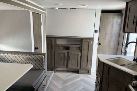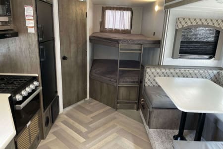 The Forest River EVO’s spacious design and thoughtful layout make it the perfect home-away-from-home. The slide-out expands the living area, giving everyone room to spread out and relax, while the bunk beds and convertible spaces provide flexible sleeping options. Whether you’re planning a weekend at the lake or a road trip across the country, this trailer has everything you need for a comfortable, memorable trip.