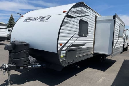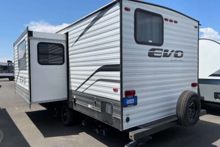 Get ready to elevate your next camping adventure with our luxurious Forest River EVO travel trailer! Designed with comfort and convenience in mind, this RV features a spacious living area with a slide-out, perfect for creating unforgettable memories with family and friends.