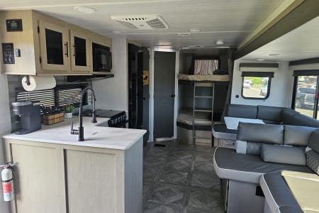 Get ready to create life long memories in our cozy, family friendly RV travel trailer. Perfect for exploring national parks relaxing by the Lake or camping under the stars, our fully equipped trailer has everything you need for a stress-free getaway.
