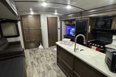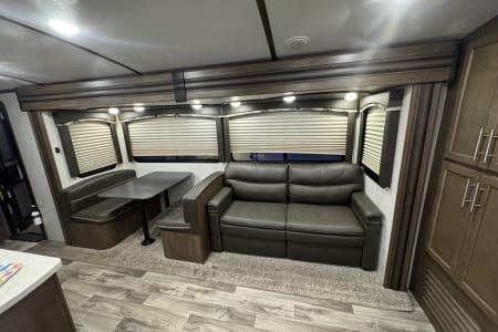 This spacious trailer boasts three slide-outs, offering ample room for up to 9 guests to sleep comfortably. With a Dual A/C System, you'll stay cool and stable wherever your adventures take you.