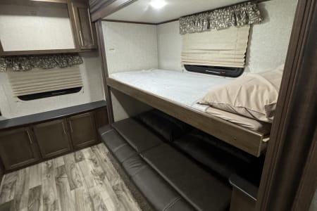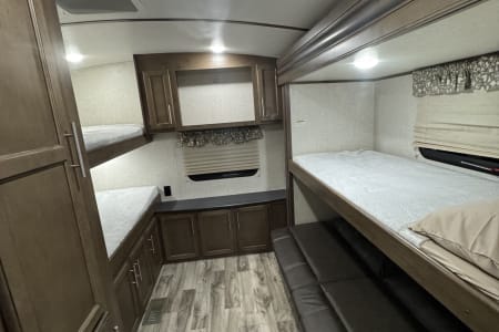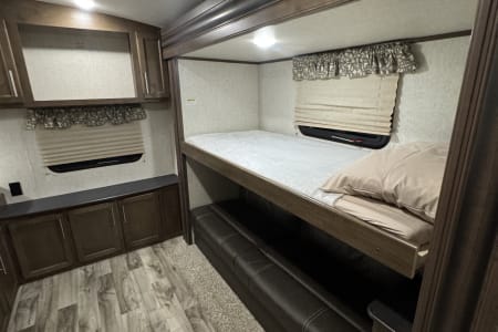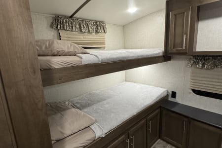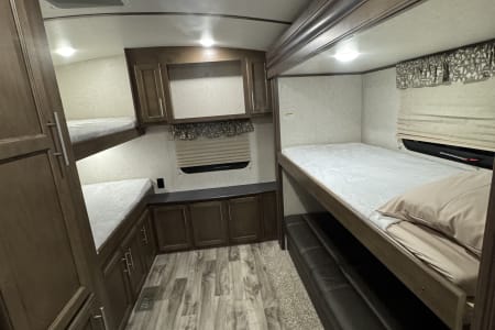 This 37' Keystone Cougar features a Private Bunk House Bedroom, making it the perfect retreat for families and friends alike.