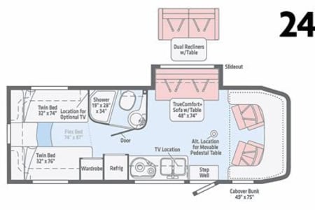 ✅ Sleeps Up to 4 – Features twin beds that convert into a king-size bed, plus a sleeper sofa or dinette.