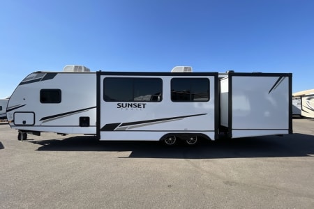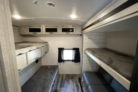 Let your adventure begin camping and exploring in our 2023 37ft bunkhouse.
