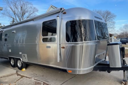 Meet LainnaBelle – This is a 27' Front Bed (FB) 2021 Airstream Globetrotter, with sleeping capacity for 6. It's a 50-amp rig that includes an on-demand HWH, heat pump, furnace, and two air conditioners. It includes automated leveling jacks and a powered awning to make setup and teardown a breeze.