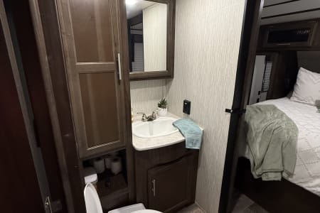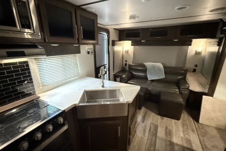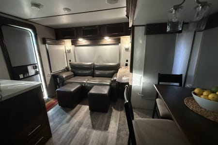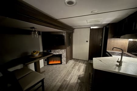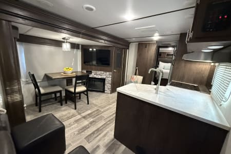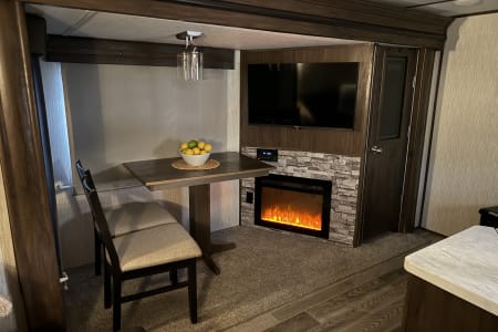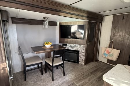 Our little Oasis On Wheels is simple, cozy, warm and a comfortable getaway that is perfect for a family/group of four to enjoy being away from home and yet still has all the amenities of home-without our normal distractions. If you prefer to stay indoors, you can enjoy a Smart TV in the living room and one in the bedroom, a fireplace, games, a cozy space on the couch to read, journal, breathe, snuggle, chill and overall relax. One of our favorite features of this sweet oasis is that it has plenty of windows so you can enjoy the scenic views wherever you are. For your outdoor adventures and pet lovers, the outdoor shower is a treat after a long day exploring. We have gratitude for every opportunity we get to enjoy our Oasis on Wheels-all of the adventures from hiking, paddle boarding, biking, sitting by the fire, enjoying one another, in awe of the stars and appreciating nature. We are excited for you to experience our Oasis On Wheels and we know you will enjoy it as much as we have.