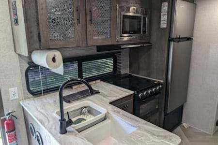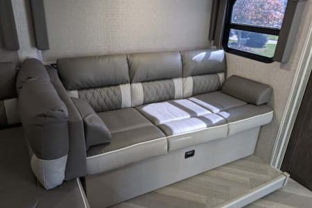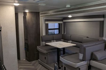 Comfort and Convenience: Step inside and be greeted by a warm, inviting interior that feels like home. With plush seating, a fully-equipped kitchen, a bunk room for the kids, and a cozy sleeping area, you'll have all the comforts of home while exploring the great outdoors.