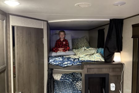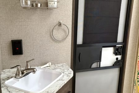 Let's be honest, it's too hot most of the year to tent camp in Texas. This 2021 Jayco is the perfect blend of luxury and the beautiful outdoors. With double sized bunk beds, this can sleep up to 10 (8 adults) and the kitchen, equipped with a large stainless steel sink, is big enough to cook for a crowd! A private bathroom with its own exterior door is very convenient, and makes for an easy cleanup if your crew has muddy or sandy feet. This camper is stocked with everything you should need for your stay, such as towels, linens, kitchen supplies, toilet paper, games, and the list goes on! On the outside, you'll find propane tanks, an outdoor rug, charcoal grill, hoses, and some camp chairs. We include a backup camera with monitor, weight distribution hitch and wireless brake controller (if needed) so no need to bring your own.