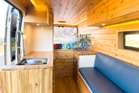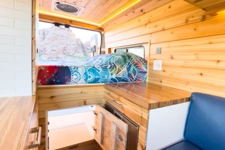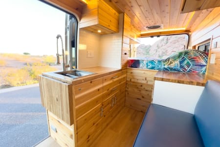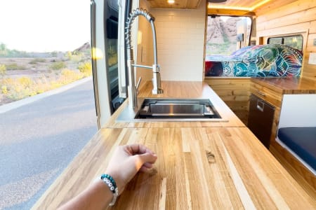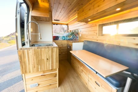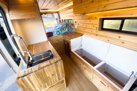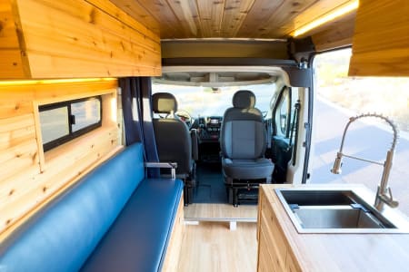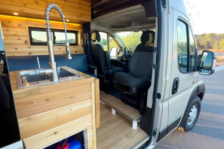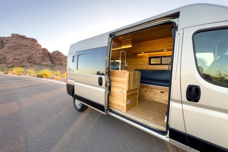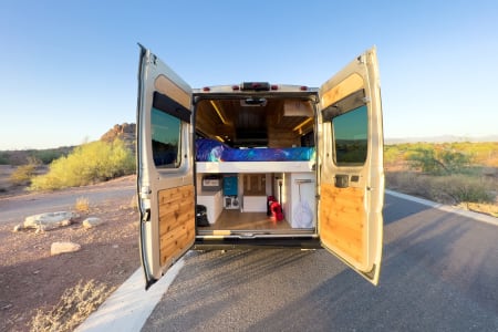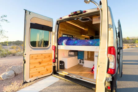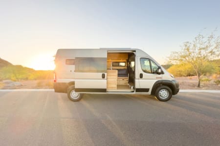 'Dot is a 21 RAM Promaster 2500 High Roof 159". The custom build out was completed by Boho Life--seen on Shark Tank. We tested a variety of configurations and amenities before we settled on what went into Dot--and we couldn't be happier. She provides the perfect set up for adventuring, relaxing, and, if you must, working remotely. Best part? Your furry friends can come, too!