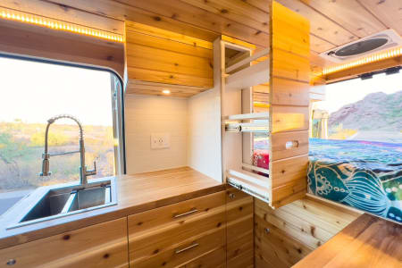 Dorothy (Dot) is ready to take you over the rainbow, or wherever adventure lures you. This camper van has everything you need for an epic trek into the wild--including Apple CarPlay, so can be hands-free and focused on your drive.