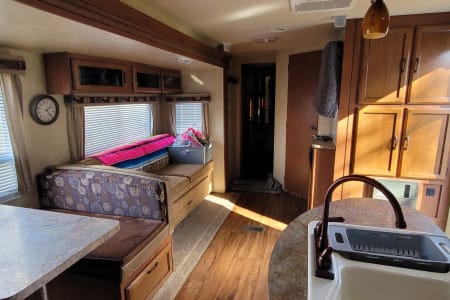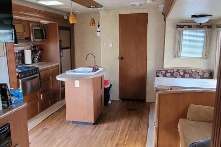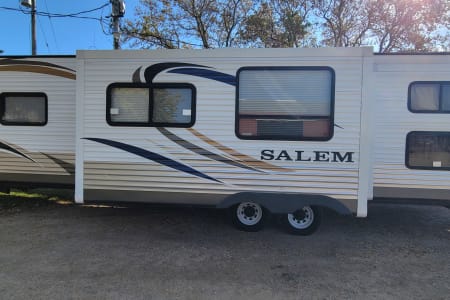Roomy, family friendly camper with 3 smart TVs! Has a private Queen bedroom in front and private back bunk room. 3 slide outs total and an outdoor kitchen.