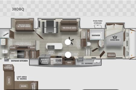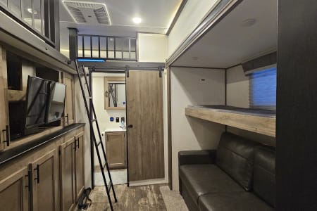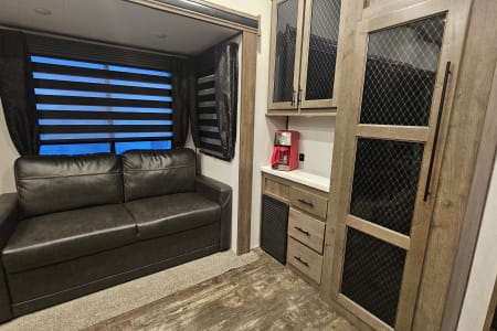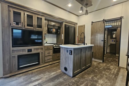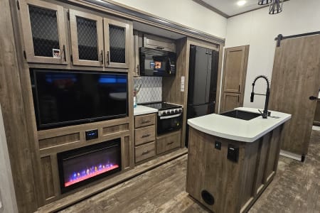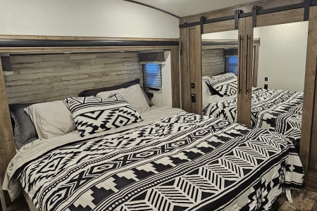 Our 2022 Forest River Sabre is the perfect home on wheels for your next adventure! Designed with families in mind, this spacious fifth wheel comfortably sleeps up to 10 people and features 2 full bathrooms—a rare find that makes camping even more convenient.