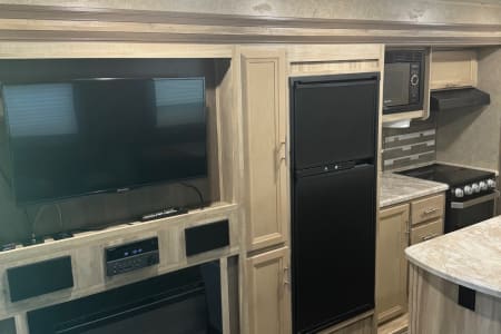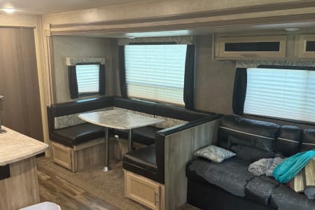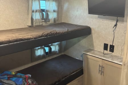 Our camper is ready for your group or family to enjoy. I will deliver and set up the camper at your desired location (within an hour drive of Arnaudville, la). In the camper you will find a bunkhouse in the rear with it's own AC unit, large kitchen with island, booth that converts to a bed which comfortably sleep two adults, fold down couch in the living area, large shower in the bathroom, and a queen bed in the master bedroom. There is an electric awning to help hide from the summer sun when outside. Also outside you'll find a mini fridge and a sink (we always kept a few beers in the outside fridge to limit trips up the steps!). I will provide a gas cook top, propane bottle and two folding chairs for extra outside entertainment. Two tv's are in the camper and there is a radio/cd player which of course is bluetooth capable and plays inside, outside or both.