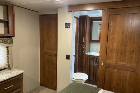 There is one bathroom with a shower, toilet, and sink for you and your guests to share.