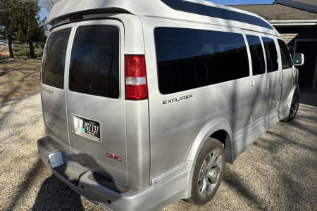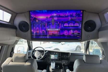 This 9 passenger GMC Savanna is perfect for a party, tailgate, camping or a road trip. With 6 captains chairs that swivel and a rear bench seat that folds flat. This van has many different options for seating arrangements. The TV with roku is a great way to pass the time while traveling down the road. Also, HDMI ports for additional gaming systems. ie (Nintendo, Playstation, Xbox and more). Sorry, you must supply the gaming systems.