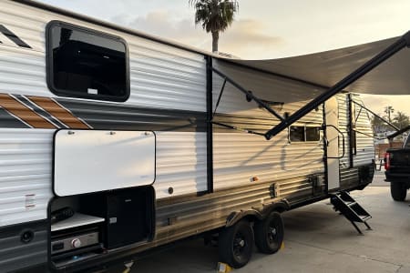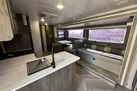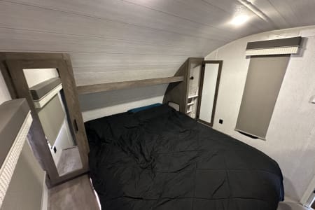 If you're looking for a quick weekend getaway or even for an extended vacation, look no further. This full hook-up rv can sleep up to 10 people. It has the privacy for the main bedroom with queen bed, as well as, privacy for the bunk house with 3 bunks and convertible sofa. Both bedrooms are equipped with USB charging ports for easier convenience. The u-shaped dinette and sofa, in main living area, both convert to beds when you need the extra sleeping space. There is a smart tv in main area. A bluetooth speaker system that can play both inside and/or outside rv.