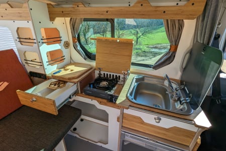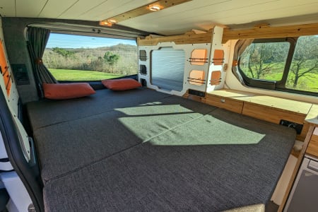 L'aménagement 2 PLACES OTAGO s'inspire d'un grand classique de l'aménagement, utilisé depuis des années dans le célèbre Volkswagen California, aujourd'hui revisité avec modernité et ingéniosité. Idéal pour une escapade à deux, cet agencement polyvalent séduit par son organisation optimisée, parfaite pour vivre une aventure nomade mémorable. Son principal atout réside dans le dégagement de l’avant, offrant un espace de vie convivial et chaleureux, imprégné de l’esprit bohème et hippie des road-trips. Le van 2 PLACES OTAGO se distingue également par sa grande cuisine pratique, ses nombreux espaces de rangement, son lit double confortable et son espace de vie spacieux, conçu pour un confort absolu en toute liberté !