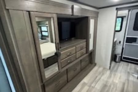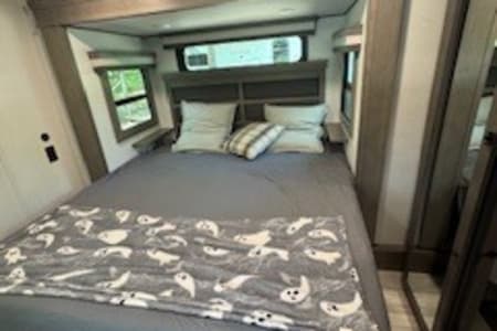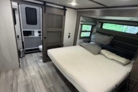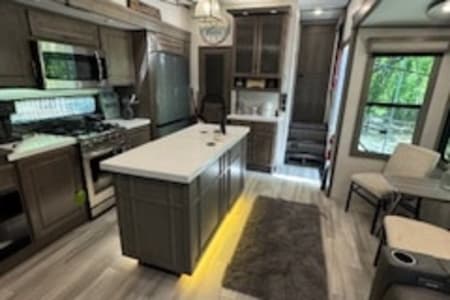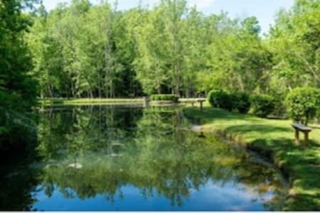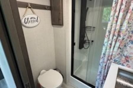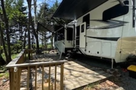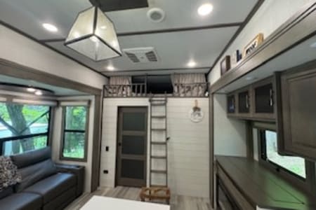 The Mountain Get away is nestled in a beautiful year around campground in the Blueridge mountains. Our get away is permanently placed at Misty Mountain Campground. It has 2 master suites with 2 full bathrooms, a loft which is perfect for kids, a full kitchen, living area, 3 TVS, deck with table outside, fence for pets, laundry room, a pool (seasonal), hiking trails, jump pad for kids, playgrounds, fire pits, fishing pond, horse shoe pits, and natural creek running through the grounds, live music most weekends, and seasonal activities. The campground is in close proximity to Charlottesville, Crozet, Waynesboro, Staunton, Winter Green Ski Resort, Nelson 151 Trail which has numerous wineries and breweries, hiking tails, and history. This is a perfect mountain get away for friends and family!