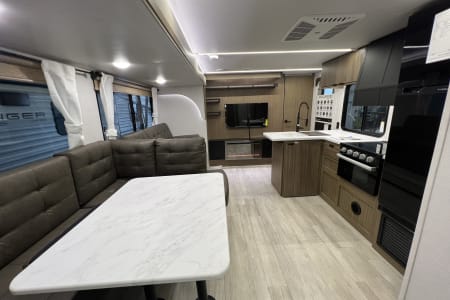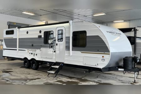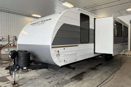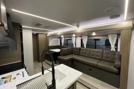 This luxury travel trailer is an excellent choice for family vacations, as a temporary "guest house" for visiting family and friends or as a longer term rental in the event of water damage claims or homeowner's insurance claims.