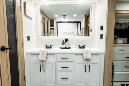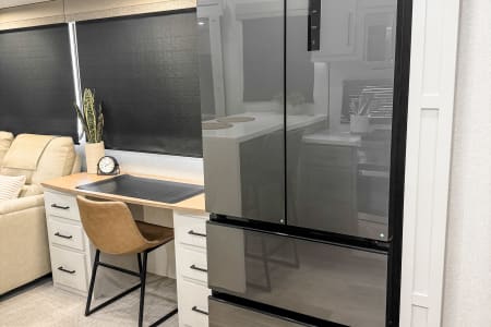 The newest addition to the SoCal Trailer Rental this 3800RK brings a completely redesigned layout that was built for long term comfort. Whether you are camping along the beach for the week or in the desert for a month, this unit will make you feel like you're in a 5 star resort. What separates this unit from others is its huge kitchen, massive living room, king size bed and the largest bathroom and walk in closest available in the industry. Wait, did I mention the dedicated laundry room? Complete with both a full size washer and dryer, this unit leaves nothing to be desired. Even if you aren't staying long enough to enjoy the value of the washer and dryer, the laundry room offers ample added storage space so your luggage and other items don't clutter up the living space of the trailer. We went above and beyond with this unit and it's just too good to not see in person.