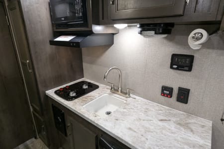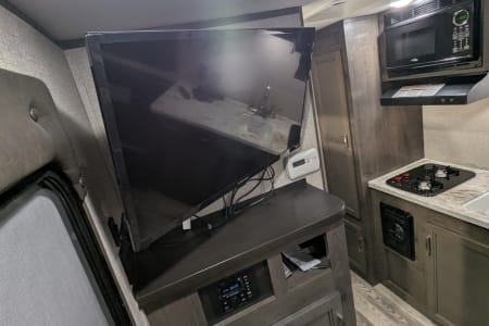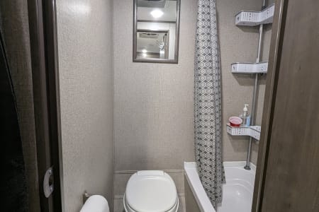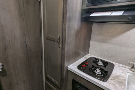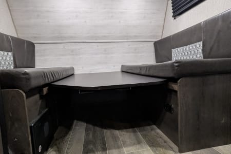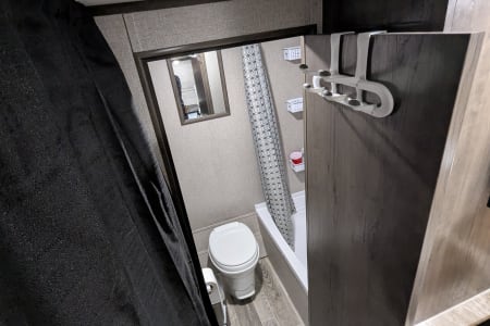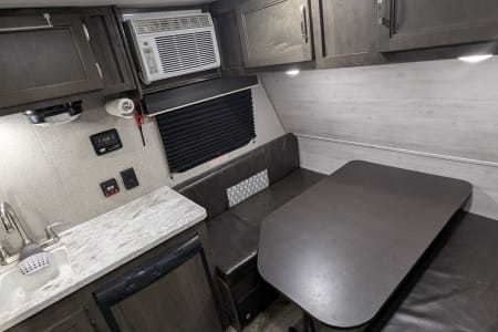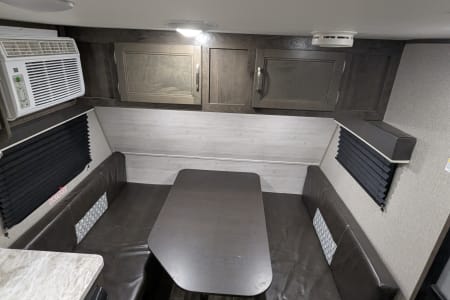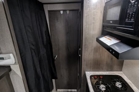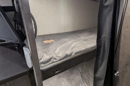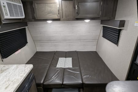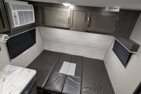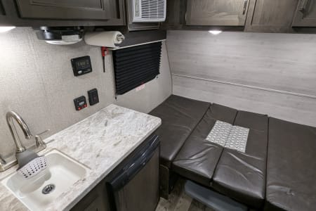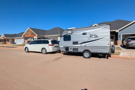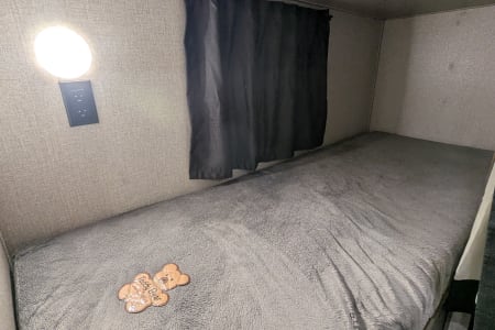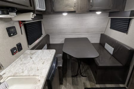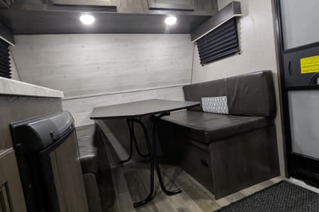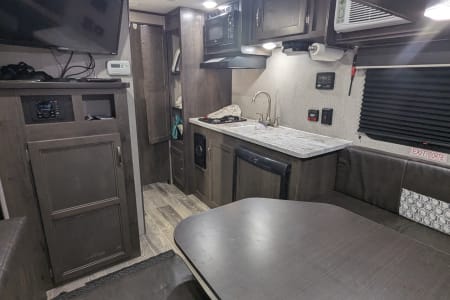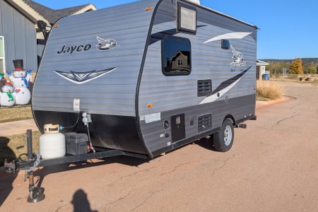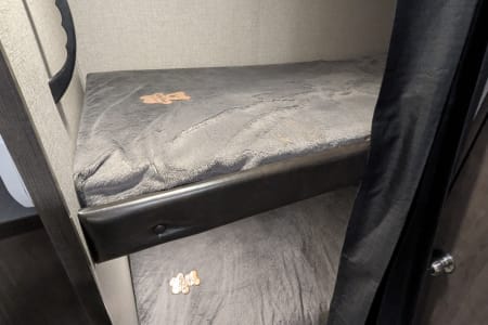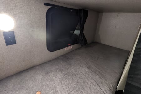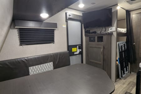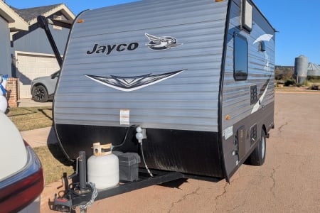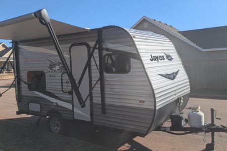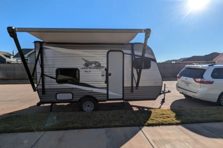 Hello, we bought this camper spring of 2024 to create family memories with our kids and spend time camping together. The camper is small, comfortable and ideal for families and convenient camping with bunk beds, a tub for bathing kids or showering, hot water and a toilet while still being manageable with a smaller tow vehicle. The dinette converts to a bed for two and the small refrigerator works great for a weekend trip. We have the factory solar system which ensures our battery is charged and a 6 gallon hot water heater provides plenty for showering, bathing and dishes. when entering a campground it has a 16 gallon water tank or the option to hook up to a garden hose for constant water. When leaving the campsite the grey/black water are easily drainable and the awning is great for shade. We look forward to answering any questions you might have and available by phone while your camping to ensure any needs that arise for the camper are quickly answered to put your rental fears at ease.