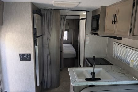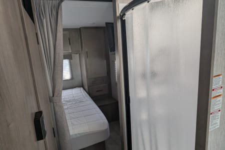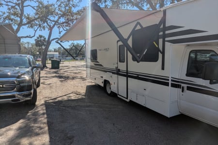 On-Board Generator, Rooftop A/C, Microwave, Power Awning, Full stand-up shower, separate restroom facilities, (2) tv's and much more. You can't go wrong at this price