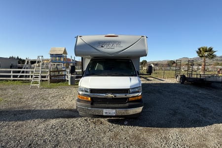 This RV is the ultimate RV for a family looking to fit everyone. Sleeps 6 people comfortably with all the beds it has. This open floor plan is perfect for the family to be together. Has a queen bed with a comfortable memory foam mattress, another queen size bed above the driver seat and a Dinette table that fits 4-6 people comfortably to enjoy meals together. It can also be converted to a bed that sleeps 2 people. RV comes equipped with pots, pans, cutting boards, knives and cooking utensils. I do provide a sheet for both queen mattresses and the dinette table, if requested. I do not provide full linens. (Blankets and pillows can be provided for $50)