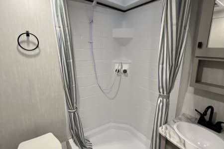 But wait, there's more! APEX has a range of amenities to make your trip a breeze. You'll find everything you need, including dining plates, bowls, silverware, pots and pans, a kitchen tool set, a toaster, a coffee maker, toilet paper, and even a TV with all the necessary campground connections.