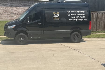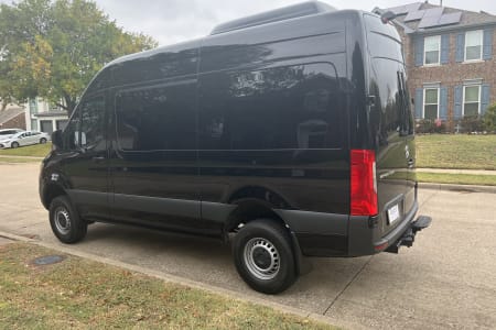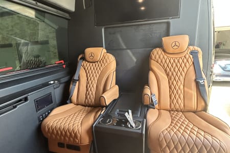 A 2022 Mercedes sprinter van fully customized. It comes with a electric partition, 2 tvs with hdmi hook-ups, 2 massage chairs heated/cooling, couch that converts to a bed, fridge/freezer, wifi, led lighting, & a pull out table.