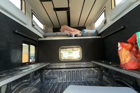 The Project M’s ultralight cab over design, elevated sleeping platform, and pop-up roof make it quick and easy to set up camp! The minimalist camper shell leaves ample room for storage of all your gear in the bed of the truck so you can travel in comfort to your destination (without having to play Tetris while packing up)