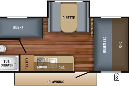Sleeps 5 Comfortably – Features a queen bed, twin bunk beds, and a convertible dinette for extra sleeping space.