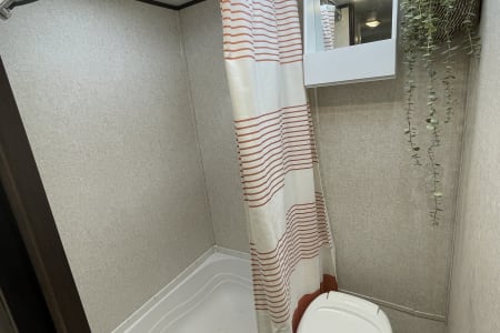 Bathroom with Shower & Toilet – No need for campground restrooms; enjoy the convenience of a private full bath.