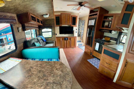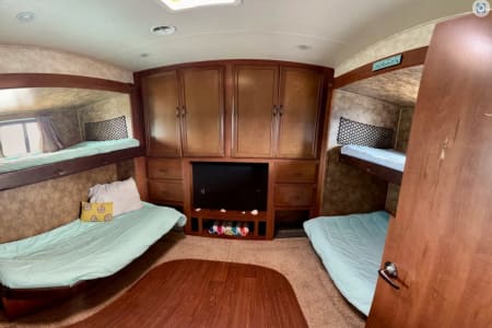 This 42ft 5th wheel will make you feel like you are living in luxury as you not only fit your family, but your neighbors also! It sleeps a max of 12 with a large bunk house, a king size master and everything in between.