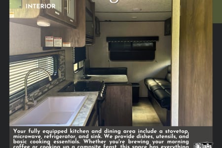 Hit the road in comfort and style with our cozy and adventure-ready travel trailer! Perfectly designed for up to 4 explorers, this camper is ideal for families, friends, or couples looking for extra space to relax after a day of adventure.